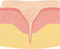 피부 속 손상이 남아 자연적으로는 쉽게 회복되지 않는 함몰 흉터입니다.