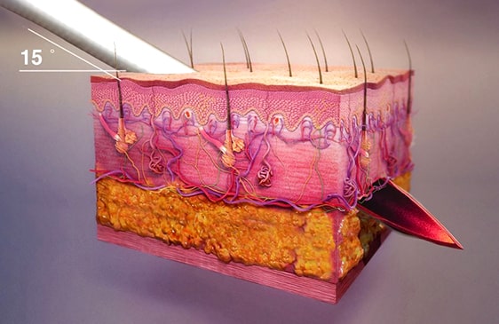 그러나 진피층은 매우 얇고, 피부 부위나 개인의 피부 상태에